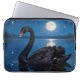 A detailed black swan glides on a calm lake under moonlight. This image features complementary colors and reflections, evoking classical academic and romantic art styles.