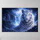 Moonlit White Tiger Guardian – Blue Fantasy Spirit Poster