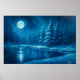 Moonlit Winter Forest by a Lake Poster