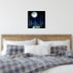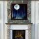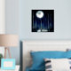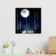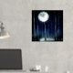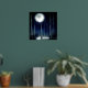 Stilvolle Folie mit Bildern des Mondes, die einen Birkenwald mit Silberfolie erhellen.