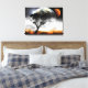 Ein einsamer Baum, der in einem Feuerkfeld stehend ist, mit den Monden oben.