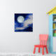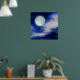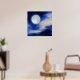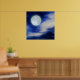 Moonscape Print - Mixed Media Grafik Design, digital verbesserte fotografische Montage des Vollmonds, umgeben von einem schwachen halo, gegen einen tiefen blauen Nachthimmel und mondbeleuchtete Wolken