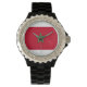 Uhr, Klassische Damenuhr mit schwarzen Lederarmband