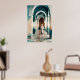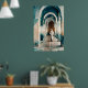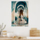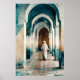 Schöne maurische Architektur und ein arabischer Mann in Blau- und Khaki-Cremetönen