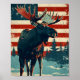 "Die Essenz der rustikalen Ameriana mit unserer Vintagen Elch Postkarte erfassen, wo Wildnis und Patriotismus begegnen. Ein majestätischer Elch nimmt die Bühne im Zentrum vor dem Hintergrund der amerikanischen Flagge und schafft so eine malerische Szene, die den Geist der großen Freizeit und des Nationalstolzes verkörpert. Diese sorgfältig gestaltete Postkarte lädt Sie ein, warme Grüße zu versenden oder als ein hochgeschätztes Medaillon behalten und die Harmonie der Natur und das bleibende Symbol der amerikanischen Wildnis zu feiern."