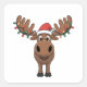 Moose Christmas Tree Lights Funny Xmas Moose Lover Quadratischer Aufkleber