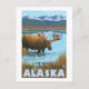 Moose Drinking am Lake - Denali Nationalpark, AK - Vintage Travel Poster wurde im Jahr 2007 gegründet. Dieses Bild zeigt Szenen aus dem Nationalpark Denali, AK.