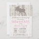 Moose Girl Babydusche Einladung mit rustikalem Woodland Hintergrund.