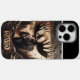 Eine hölzerne Schnitzerei, die einen Elch mit Anthropfen-Set vor einem Waldhintergrund darstellt. Die Schnitzerei ist detailliert und realistisch, der Elchkopf und die Geweihten werden sichtbar angezeigt.