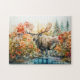 Moose standing in pond among plants puzzle