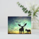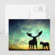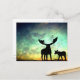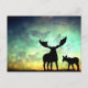 Mutter und Elche blicken auf einen pulsierenden Sonnenaufgang