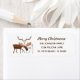 Unser fröhliches, urlaubsszenario-thematisches Retourenlabel besticht durch eine schokoladenfarbene Holzmoose und ein hübsches Weiß- und Grauhirsch mit dem Text: "Fröhliche Christmoose" über Ihrem personalisierten Namen und Ihrer Adresse. Teil unserer fröhlichen Weihnachtskollektion.