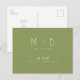 Ultramoderne Moosgrün mit weißem Monogramm Save the Date. Hochzeit. Vor- und Nachnamen. Moderner Schriftart.