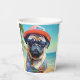 Mops am Strand, Sommergeschenk für Hundefreunde Pappbecher