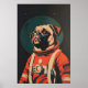 Mops-Astronautenposter, Mops-Retro-Druck, Mops Poster