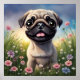 Niedlicher Mops Welpe in einem Feld von Blume.