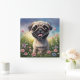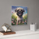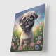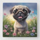 Niedlicher Mops Welpe in einem Feld von Blume.