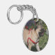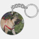 Mops, der rotes Geschirr trägt Schlüsselanhänger