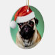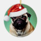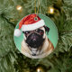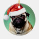 Niedlicher Mops mit einer Weihnachtsmannmütze.