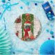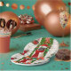 Mops Hunde Weihnachten sitzend draußen geschmückte Zuhause mit Weihnachtskranz, Weihnachtsbaum ist eine perfekte Weihnachtsgeschenk Idee für Hundefreunde.