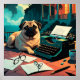 Mops Dog mit glänzendem Fell und einem Gentleman Vintage Schreibmaschine