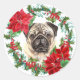 Mops Dog Poinsettia Holly Weihnachtskranz Runder Aufkleber