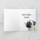niedlicher Mops in Decke verpackt, gut mit innen bedruckten Karte erhalten