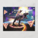 Mops fahren Dinosaurier Einhorn im Weltraum Postkarte