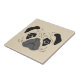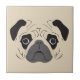 Der lustige Mops steht vor der Silhouette. Anpassbare Hintergrundfarbe (Weichzeichnen empfohlen).