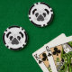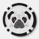 Der lustige Mops steht vor der Silhouette. Anpassbare Hintergrundfarbe (Weichzeichnen empfohlen).