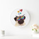 Mops Hund am Herztag Valentinstag Große Wanduhr