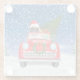 Mops Hund Autofahren im Schnee Weihnachten Glasuntersetzer