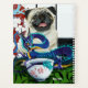 Ein niedlicher Mops-Hund und ein chinesischer Drache sitzen vor einer leeren Reisschale, die glücklich gewartet wird, zum Mittagessen gefüttert zu werden.