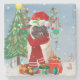Mops Hund im Schnee mit Weihnachtsgeschenken Steinuntersetzer