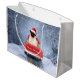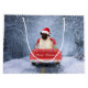 Mops Hund im Schnee sitzen im Weihnachtswagen Große Geschenktüte