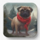 Mops Hund im Schnee Weihnachten Pappteller