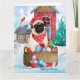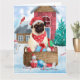 Mops Hund im Schnee Weihnachtshundehaus Karte