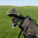 Mops Hund mit einem grünen Hoodie-Treiber Golf Headcover