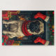 Mops Hund mit Weihnachtsgeschenken Feuerplatz Puzzle