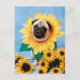Mops Hund Sonnenblume Postkarte