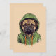 Mops Hund trägt grüne Hoodie Feiertagskarte