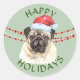 Mops Hund Weihnachtsmannmütze Happy Holidays Runder Aufkleber