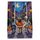 Adorable Mops, die in verspielten Halloweenkostümen gekleidet sind, tragen Kürbiseimer, während sie unter dem Mondlicht tricksen oder sich behandeln. Dieses festliche Design hebt das zerknitterte Gesicht der Rasse, die großen runden Augen und die liebliche Persönlichkeit hervor, die perfekt die sprichwörtliche und dennoch lustige Atmosphäre Halloween-Abends einfängt. Eine wunderbare Feier für Hundefreunde und Halloween-Fans gleichermaßen.