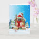 Mops im Schnee mit Weihnachtsgeschenken Karte