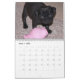 Fotografieren Sie den Kalender, der 12 hochwertige ursprüngliche Bilder eines schwarzen Mops kennzeichnet.
