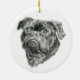 Dieses Ornament weist ein Profil auf, das von einem Mops gezeichnet wird. Ein tolles Geschenk für Mops-Liebhaber! Details zum Kunstwerk: 12x12 Ölpasten auf Papier. Copyright: Dominic A. White. Alle Rechte vorbehalten.