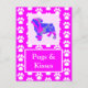 Mops & Kisses Silhouette in Niedlichem Rosa & Blau Postkarte