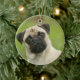 Mops-Kopf gespannt, Kamera betrachtend Keramikornament