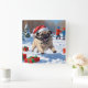 Mops läuft im Schnee mit Weihnachtshut Quadratische Wanduhr