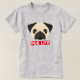 Niedlicher, blassfarbener Mops-Hund mit grauem Schriftart, der "Mops-Leben"
